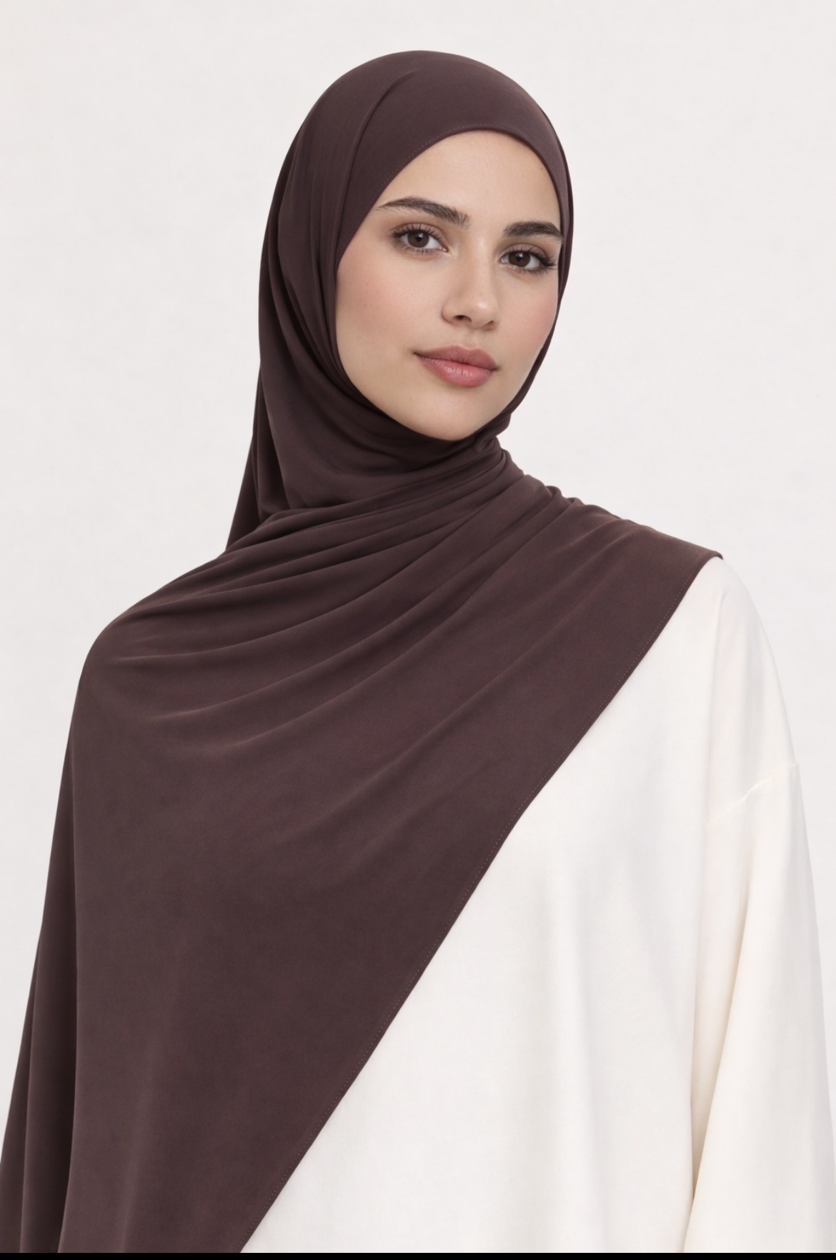 ublimez chaque tenue avec le voile en jersey liquid  de luxe Hijabi’nour , sa matière haut de gamme alliant douceur soyeuse, tombé fluide et tenue parfaite sans glisser.